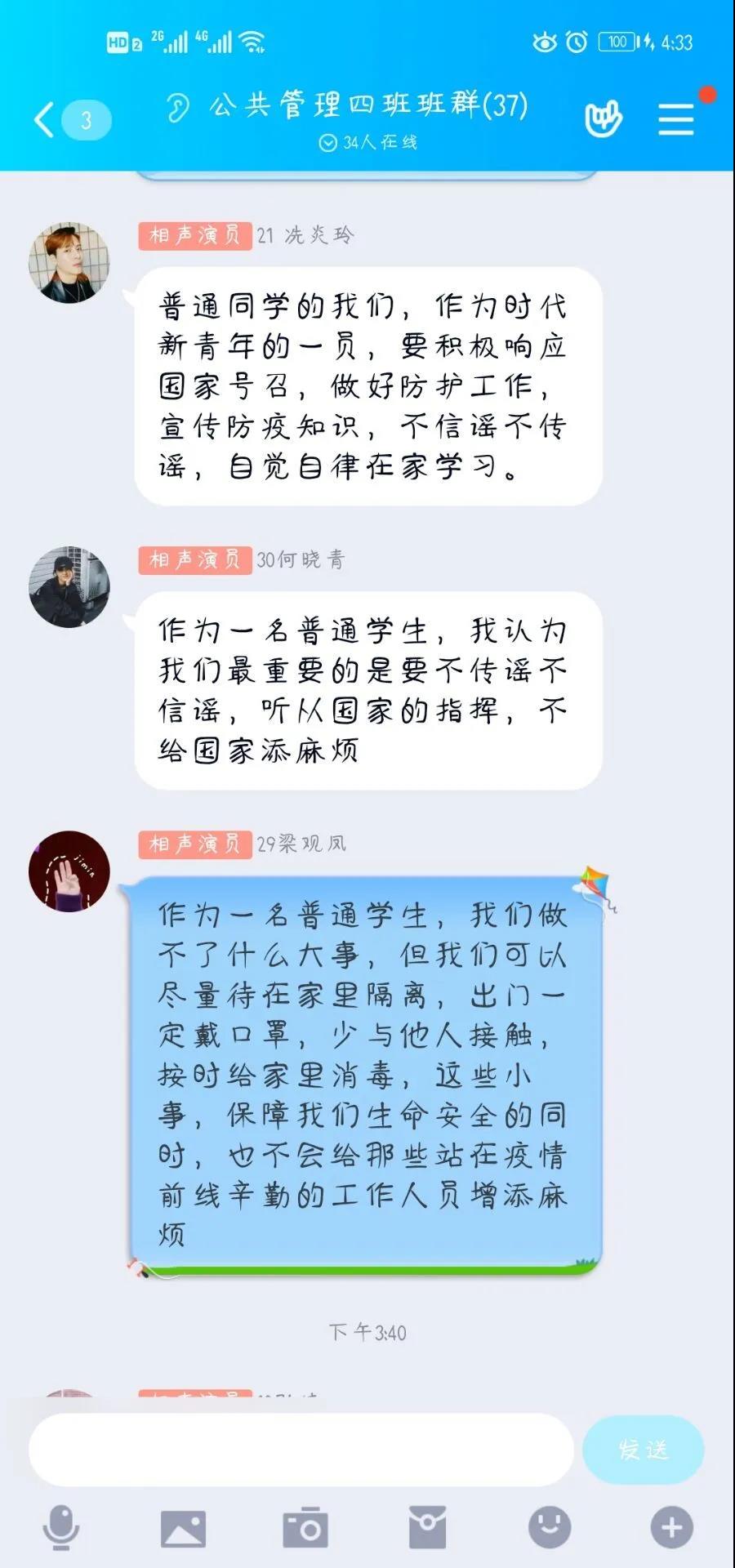 2019级公共管理类3班团支部王克宇说:“我认为作为普通学生,首先要做到的就是在能力范围内为国家的抗疫工作提供支持,不添乱、不信谣、不传谣,学习科学防疫知识,履行学生义务。”