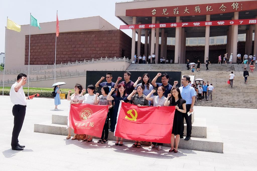 党委开展以“踏寻先辈足迹,弘扬革命精神”为主题的党员实践教育活动,学院党委成员以及教工、学生党支部书记一行十三人赴台儿庄瞻仰革命旧址,缅怀革命先烈,接受红色教育。