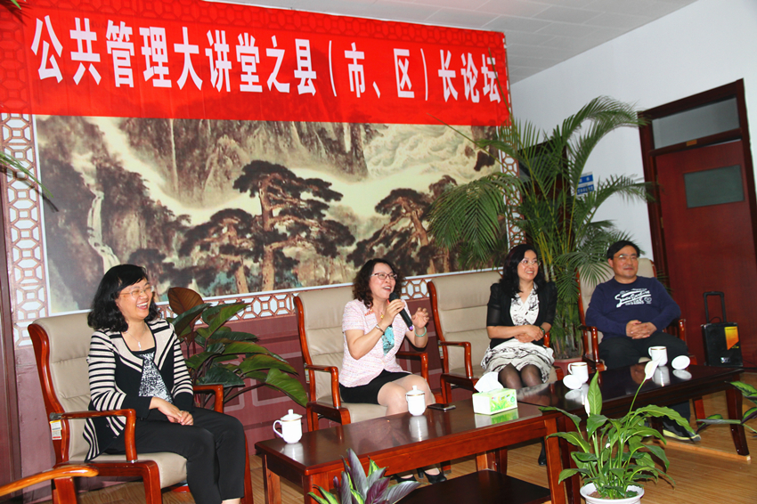 5月4日,应张红凤院长邀请,青岛市李沧区副区长孙晋华,济南市槐荫区副区长印东,淄博市沂源县副县长李玲,淄博市周村区副区长李寅萍出席公共管理大讲堂之县(市、区)长论坛。论坛由CQ9电子