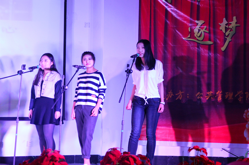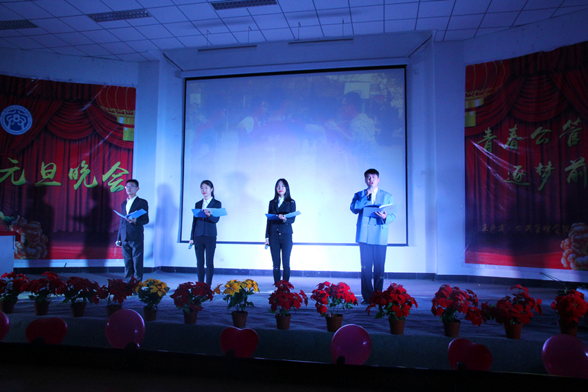 12月17日,“青春公管,逐梦前行”2016元旦晚会在明水校区5201圆满落幕。校团委书记刘奇耀,校学生处副处长王晓强,我院党委书记郑磊,副院长董西明、李国锋,党委副书记周炎,院长助理、办公室主任张禹及辅导员李广华,热依拉,王超等出席参加了本次晚会,并一同观看了节目。