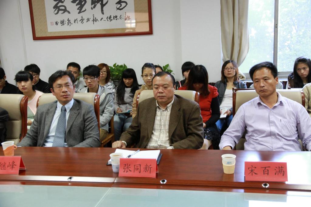 2013年10月15日下午,“民企业家、泰山学者谈成才与创业之路”座谈会暨校外创业导师聘任仪式在我院308会议室召开。张同新、宋百满、刘继峰三位嘉宾,CQ9电子 全体领导,2013级研究生以及部分本科生参加了本次大会。座谈会由李国锋副院长主持。