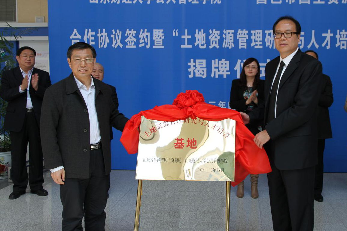 4月26日,我院与昌邑市国土资源局全面合作协议签约暨“土地资源管理研究与人才培养基地”揭牌仪式在昌邑举行。学校党委委员、副校长吴彬教授出席签约仪式,并与潍坊市国土资源局党委委员孙希志共同为“土地资源管理研究与人才培养基地”揭牌。CQ9电子