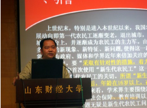 的成立表示祝贺,对应邀做学术报告表示感谢,然后就他主持完成的“福州市新生代农民工调查”项目的研究成果进行了详细论述。