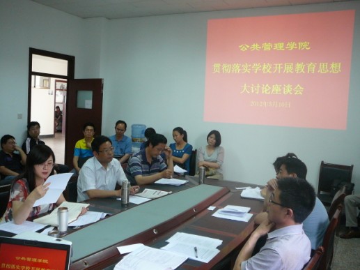 按照学校统一部署,围绕 “办什么样的大学,如何办好大学”、 “培养什么人,如何培养人”两个根本问题,结合我院实际,此次讨论主要围绕十个中心议题来展开:(1)在高等教育大众化的背景下,如何确立教学工作的中心地位,树立正确的教育观、教学观、学生观、质量观,全面提高教育质量?(2)如何加强学生思想政治教育,提高班级建设质量,形成合力育人机制?(3)学校(学院)服务国家基础产业和经济社会发展的主要作为在哪里?如何拓展公共管理学科的发展?如何深化社会服务、进一步推进产学研用相结合?(4)如何体现以师生终身发展为本,进一步调动师生积极性主动性?如何进一步整合人力资源,建设高水平师资队伍?(5)如何认识和理解师德的内涵,师德建设与个人修养、学生培养的关系?如何在教学与管理实践中不断加强师德修养?(6)如何理解校训、校风和作风、教风、学风的重要意义?如何推进作风、教风、学风“三风”建设取得更大成效?(7)如何理解办学定位、办学特色、发展目标和办学思想的内涵?怎样培育大学精神,加快校区间文化融合,加强校园文化建设?(8)如何提高育人质量为核心的内涵建设,在教学与管理工作实践中凸显办学质量和培育办学特色?(9)在推动学科转型、改革人才培养模式等实践中,如何体现并实现学校的办学定位、办学思想和人才培养目标?(10)如何在依法治校的基础上,完善内部管理体制机制,推进校院二级管理,建设高水平财经大学?