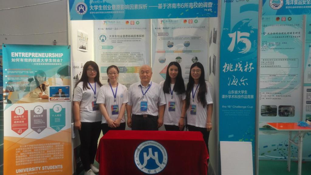 (通讯员 吕晓燕)由团省委、省科协、省教育厅、省科技厅、山东社科院、省学联、烟台市人民政府共同主办,鲁东大学承办的第十五届“挑战杯”山东省大学生课外学术科技作品竞赛决赛日前在鲁东大学落下帷幕。来自全省近60所高校的205件大学生课外学术科技作品参赛。我院由李国峰副院长、徐宏副教授指导,学生孙宇杰等7人完成的参赛作品“大学生创业意愿影响因素探析-基于济南市6所高校的调查”喜获竞赛一等奖。我院李国峰副院长、周炎副书记,辅导员王超亲临比赛现场,帮助参赛选手做赛前指导并加油助威。