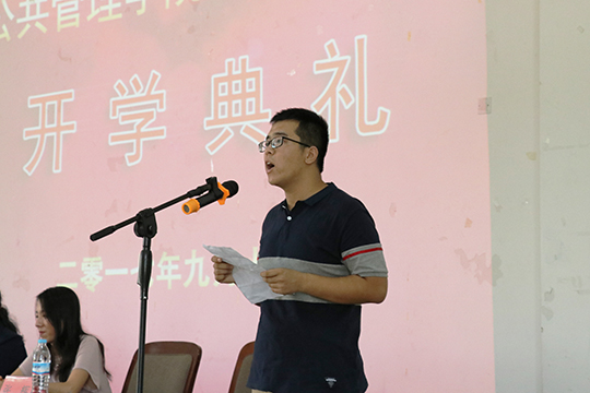 接下来,2016级学生代表刘瑞和新生代表朱新意分别发言,刘瑞结合自己大学一年的学习与生活、经历与收获发表了感想,建议新同学对自己的大学生活做好规划。朱新意则表达了自己对大学生活的期待,并倡导全体新生做规范的大学生。