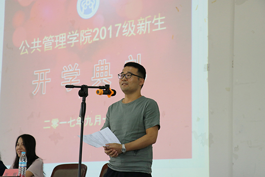 随后,我院教师代表、劳动与社会保障系主任路军老师讲话,他用诙谐幽默的语言为新生在大学里更好地学习与生活提出三方面建议:生活要有期望,要充分利用学习资源、积极组织和参加专业实践活动和公益活动、培养让自己投入的兴趣爱好;生命要有意义,在大学生活里要强化自己的专业能力,培养优秀独特的个人风格,处理好人际关系、积累人脉资源;学业要有规划,在学习和生活中要有自己的目标、善于管理时间。同时对新生寄予期望,希望新生通过大学生活的陶冶成为有大情怀、大智慧、大作为的人才。