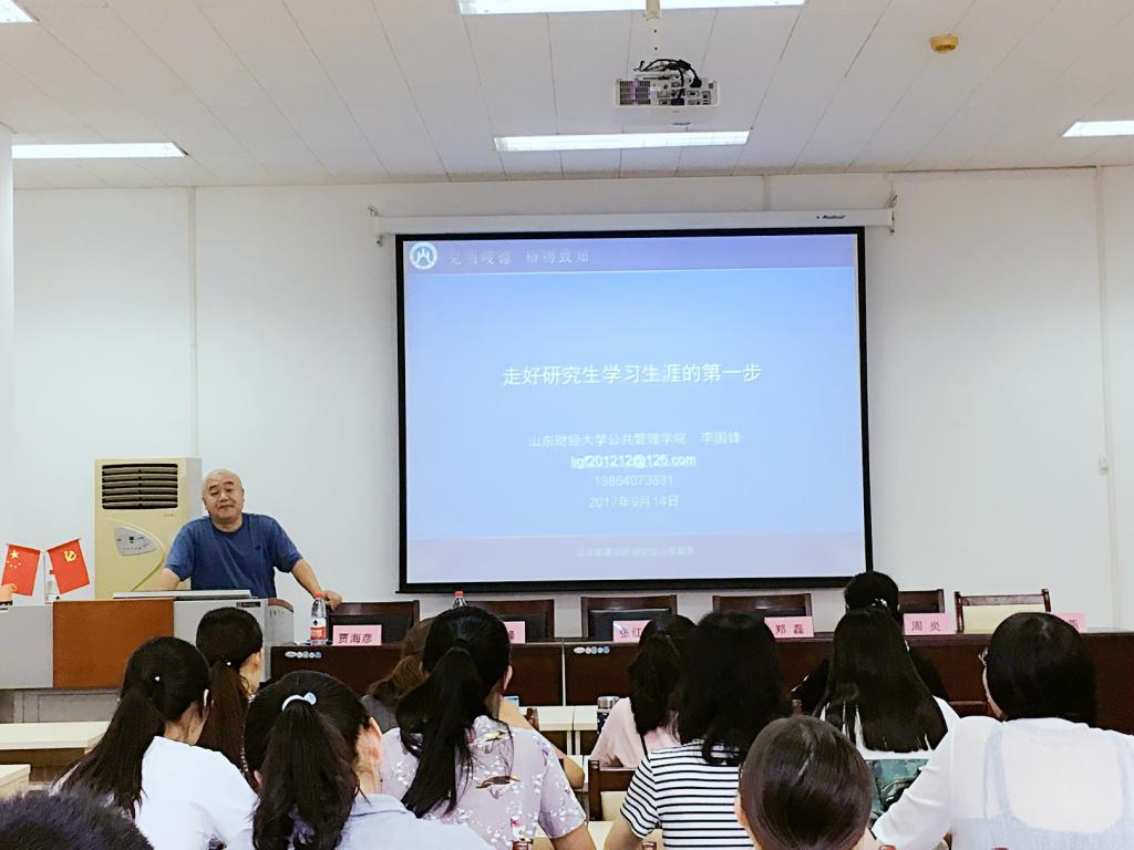 而后,李国锋副院长作“如何走好研究生学习生涯的第一步”的专题报告。李国锋副院长用诙谐幽默却又发人深省的语言向在场新生介绍了我院硕士点的基本情况简介、成功的条件与专业能力、专业素养的关系。通过向新生讲解一篇篇论文以激发学生们的研究兴趣,充分调动起新生对于学术探索的积极性,最后李国锋副院长就“走好研究生学习生活的第一步”进行了报告总结,赢得在场学生的热烈掌声。