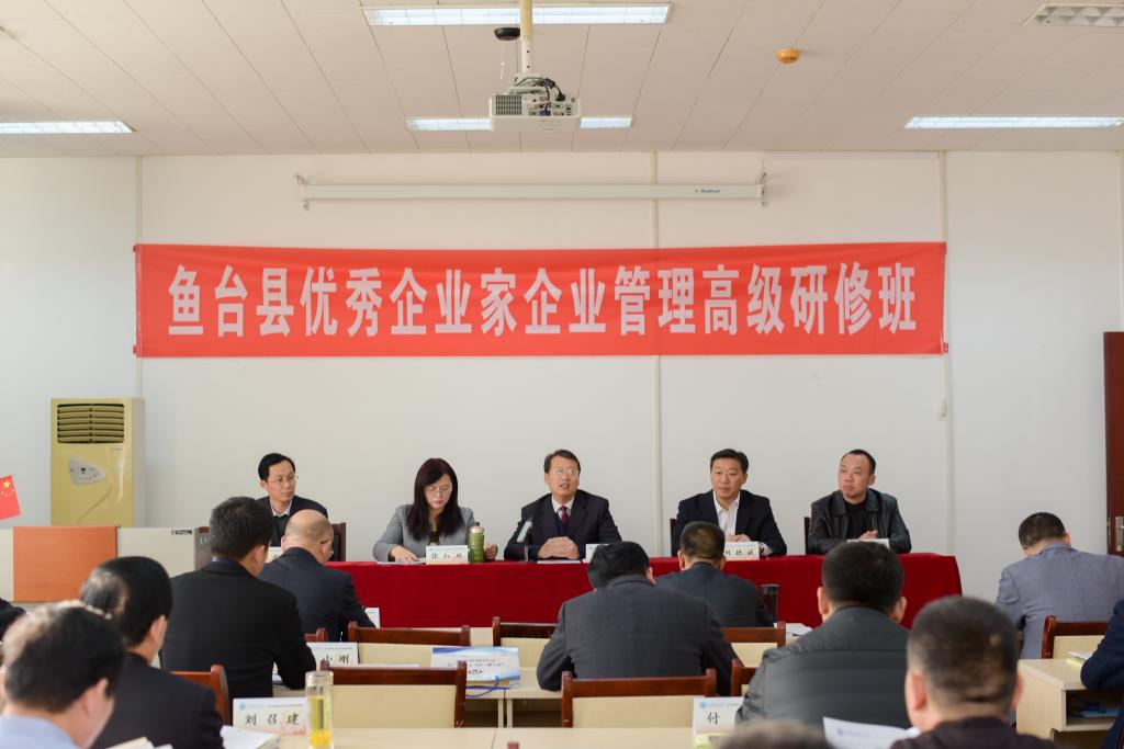 对鱼台县委县政府的大力支持。强调了本次培训的意义和本期培训的主要任务,并对培训班的学员们提出具体明确的要求。他指出各位企业家是鱼台发展活力的重要源泉,是鱼台发展潜力的重要支撑,希望各位学员结合培训学习,主动思考企业如何发展壮大,如何推动主导产业发展,如何为全县经济发展大局做出新贡献。