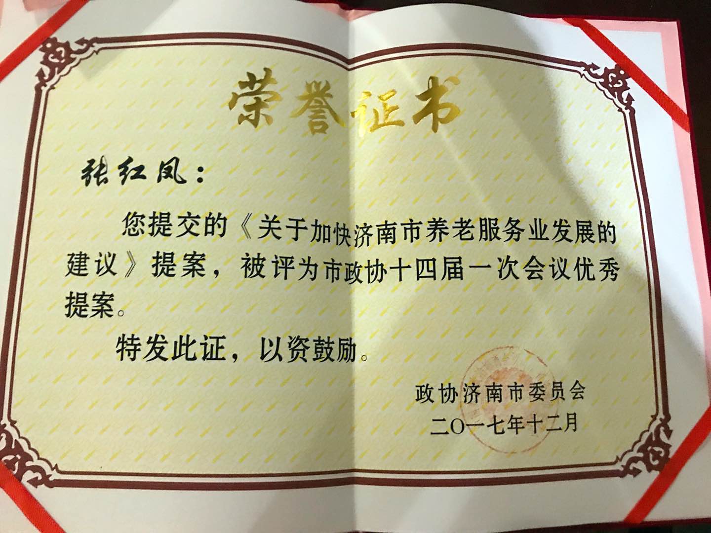 会上,张院长在市政协十四届一次会议上提交的《关于加快济南市养老服务业发展的建议》提案,被评为市政协十四届一次会议优秀提案,充分体现出张院长作为政协委员充分发挥了党和政府联系人民群众的桥梁纽带作用,积极为改善民生、推进人民群众共建共享美好生活献计出力。