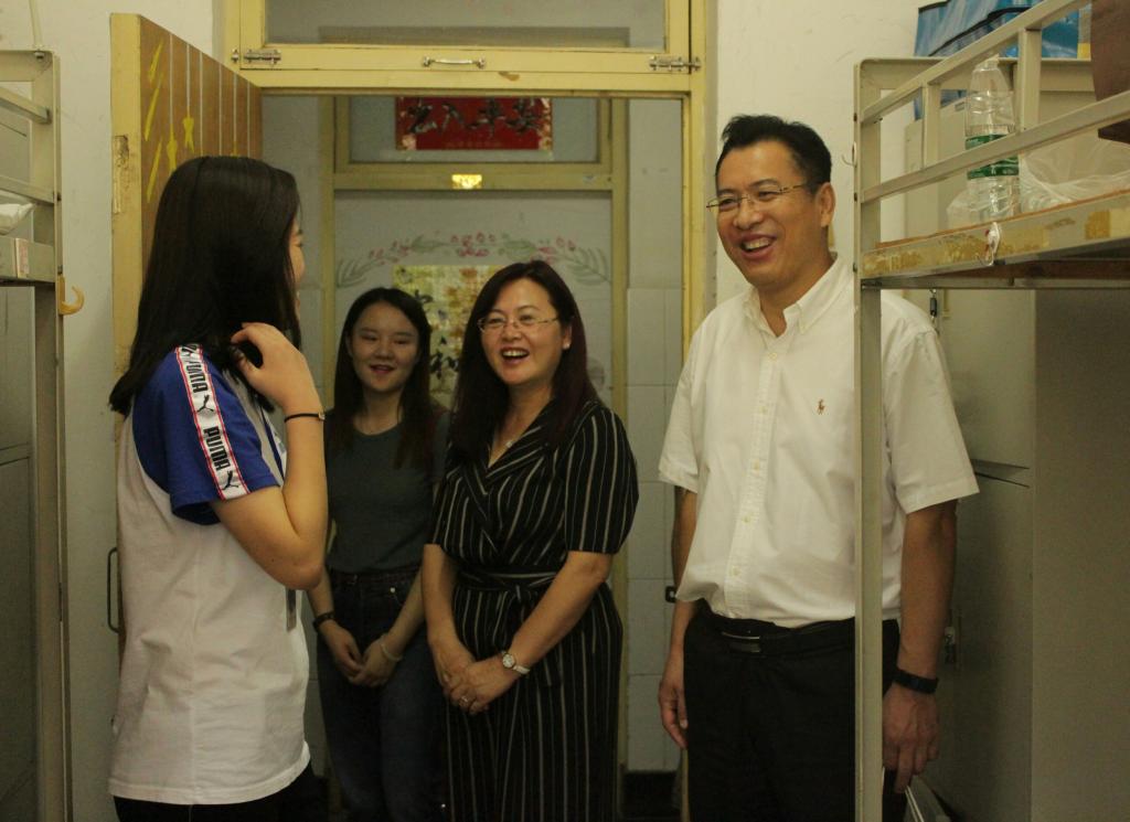 学院张红凤院长、李国强书记、吕晓燕副书记亲临迎新现场指导,慰问志愿者,还去到18级新生宿舍与新生和新生家长亲切交谈。