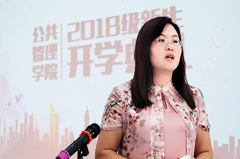 接下来,2017级学生代表祁培宸和新生代表胡明琰分别发言。祁培宸结合自己大学一年的学习、生活、工作经历发表了感想,以三个问题:我们是谁?我们在做什么?我们去哪儿?希望同学们能时时自省,努力奋斗,把握青春年华,做新时代出彩的公管学子。