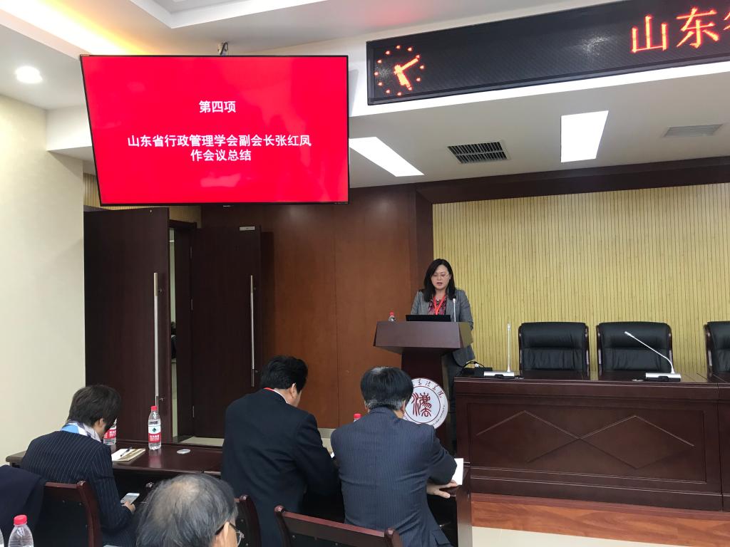 (通讯员 曲夏夏)2018年11月24日,山东省行政管理学会年会暨第五届东方行政论坛在山东大学召开。我院作为行政管理学会副会员单位和2019年度执年会长单位应邀出席,出席成员包括院长张红凤教授、副院长贾海彦教授、院长助理焦霄黎副教授、政府管理系副主任姜琪教授、曲夏夏老师。