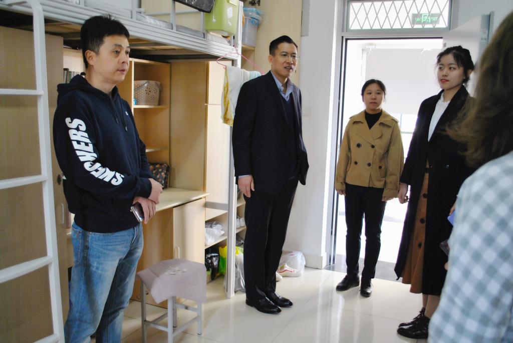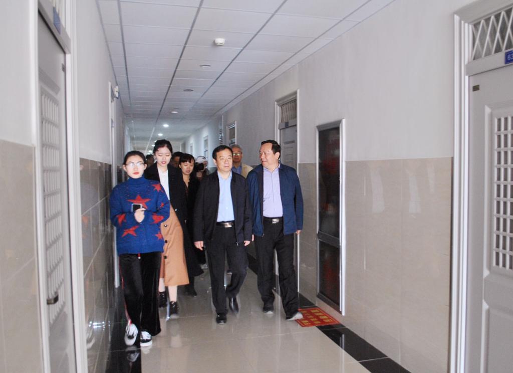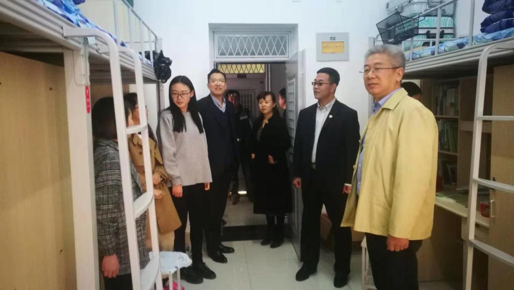3月17日上午,学校党委书记王绍军、副校长张新、学生处处长王剑等领导来到圣井校区视察搬迁工作,期间亲临我院学生宿舍,向同学们带来了亲切的问候与关心。
