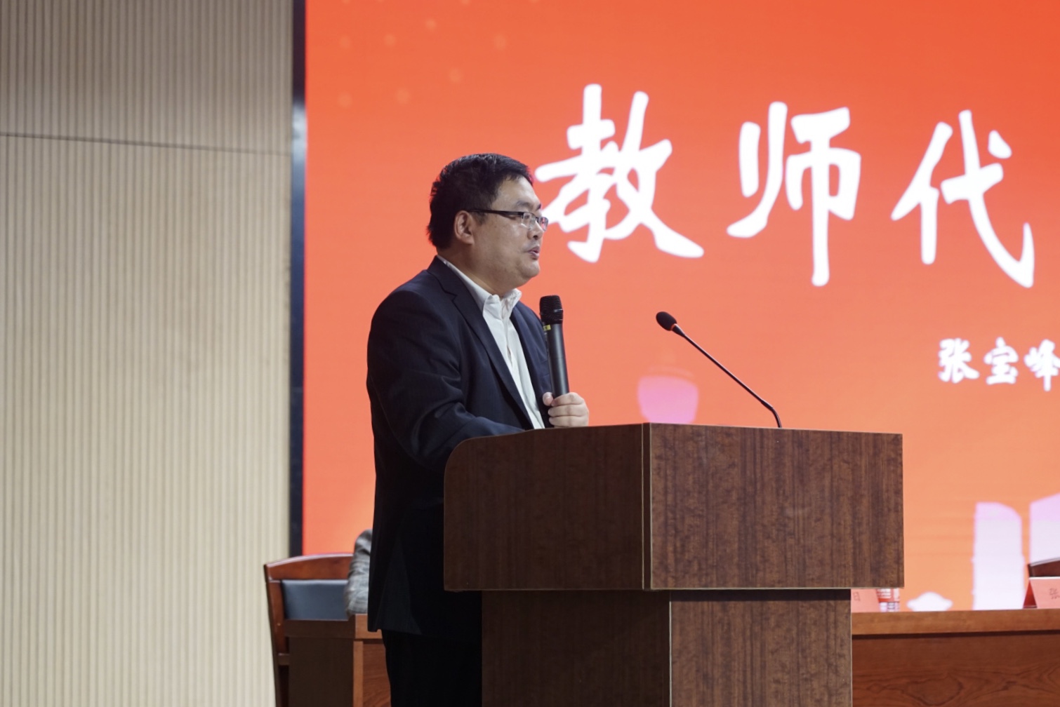 随后,我院教师代表、政府管理系主任张宝峰老师讲话。张宝峰老师指出,当今世界正面临前所未有之大变局,公共事务的治理已经开始发生重大变化,因而作为公共管理学科的学生,看待事物要立足于大背景、大视野、大格局,把握住历史机遇。基于此点,张老师提出对新生的三点要求:时刻保持优秀品性和独立自主的能力、做好对学业和未来的规划,以及持之以恒、坚持不懈地追求目标。