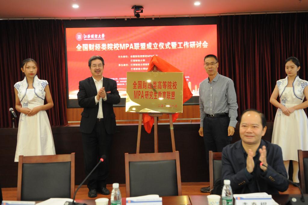 与会专家代表通过了《全国财经类院校MPA教育联盟章程》,全国MPA教指委委员、厦门大学陈振明教授与江西财经大学党委副书记蒋金法教授共同为联盟揭牌,全国财经类院校MPA联盟正式成立。