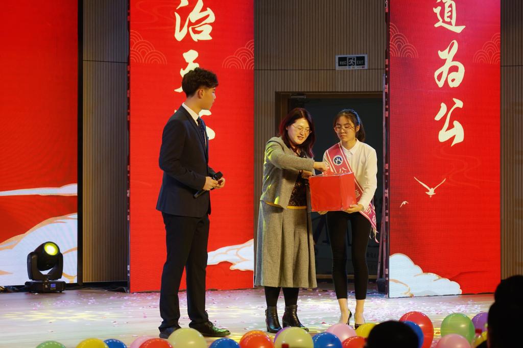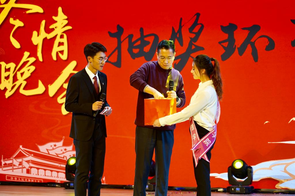 晚会中还穿插了三轮抽奖环节,张红凤院长、王剑处长和李国强书记分别抽奖并热情寄语在场的同学们,令现场气氛热烈高涨。