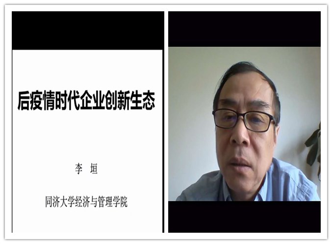 李垣教授从两个维度分析了后疫情时代的企业创新生态。一方面,从技术与创新的角度,重点阐述了新冠疫情带来的三大影响:一是全球化大趋势和科技革命对世界变革影响的大趋势不会变,但科技发展的二元性凸显,导致全球化的方式会变;二是新兴经济体崛起的大趋势不会变,但发展的路径和时间会变;三是中国改革开放的大趋势不会变,但开放的速度和对象会变,中国经济内在的巨大潜力不会变,但区域与产业的布局与发展方式会变。