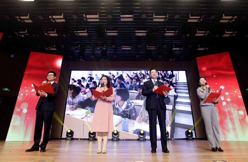 晚会开启第一篇章:扬帆·公管起航。翼声音乐协会的食物链乐队给大家带来演唱《一万次悲伤》和《蓝莲花》,表演激情澎湃,热情洋溢,充分展露出青春的锋芒,使得现场气氛迅速升温。接着,由张红凤院长、李国强书记、吕晓燕副书记、罗微副院长带来朗诵《公管,启航》,字字句句饱含深情,流露出老师们对公管学院的热爱与美好祝愿。然后,由我院研究生和本科生共同带来舞蹈串烧《无价之姐》和《Lovesick girls》,动感的音乐旋律与热情奔放的舞蹈完美融合,惊艳全场,再度掀起阵阵热潮。研究生带来歌唱节目《龙文》将优美婉约的中华传统韵律展现得淋漓尽致,美妙独特的嗓音及恰到好处的伴舞给观众带来了绝美的视听感受,赢得一阵阵热烈掌声。