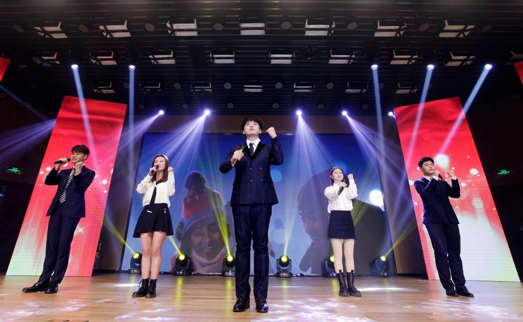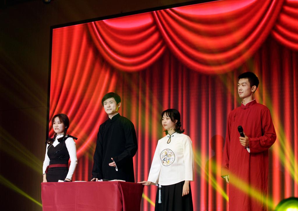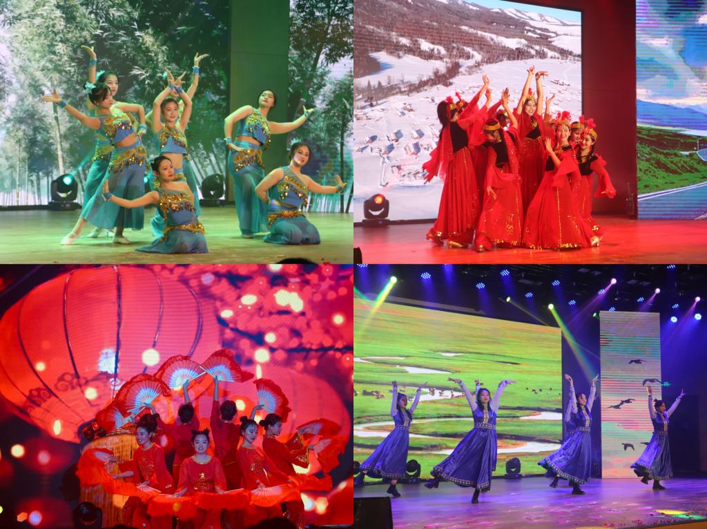 晚会进入第三篇章:腾飞·共创辉煌。拉丁串烧火热开场,音乐热情洋溢,节奏欢快强烈,动作流畅大方,舞姿动感曼妙极具个性,使得现场掌声不断。群口相声《故相新声》幽默诙谐,内涵丰富。让观众在欢笑中明白了继承和弘扬传统文化的重要性。民族大联欢《爱我中华》极具风情,民族大团结的氛围深深感染了现场的观众。走秀表演《The step of youth rhythm》洋溢着青春之美,锦秀年华之妙,全体辅导员老师和模特们同台亮相,让人眼前一亮,惊艳不已。最后,晚会在大合唱《仰望星空》和《明天会更好》中圆满落幕。