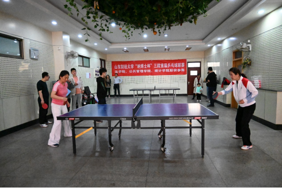 徐宏老师、统计学院张秀萍老师获得女单季军。男子组A、B组进行了首轮循环赛,更为激烈的决赛将在下次活动中继续进行。选手们在比赛过程中挥汗如雨,努力拼搏,不到最后一刻决不放弃的精神深深地打动了在场的每一个人。比赛在一片和欢声笑语中圆满结束。