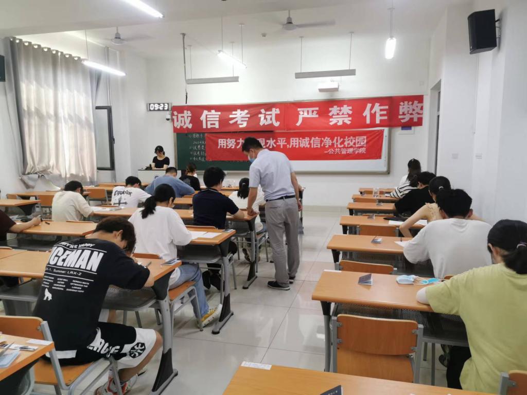 学院组成由党委书记张建和院长贾海彦任组长,院领导班子成员、学团工作人员、系主任、教学管理人员等组成的巡视工作小组,检查本学院学生所在考场的考试组织及考场纪律情况。学院每个考场都贴有诚信考试宣传标语,提醒同学们自觉遵守考试纪律,公平参与考试竞争。