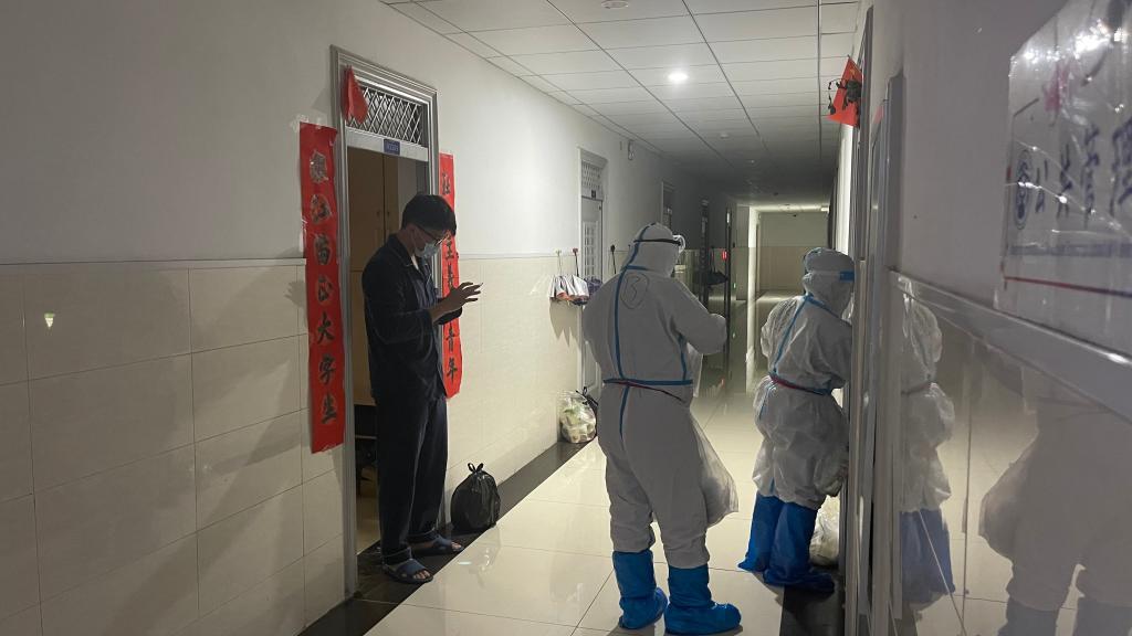 在核酸检测方面,医护人员和老师来到每个宿舍为同学们上门做核酸,保证同学们不出宿舍,每个宿舍使用一个采样管,精准掌握,有条不紊,许多同学在采样后向医护人员和老师表达了自己的感谢。空荡荡的宿舍走廊只见医护人员和老师慢慢前行的身影,而大爱却充满整个校园。