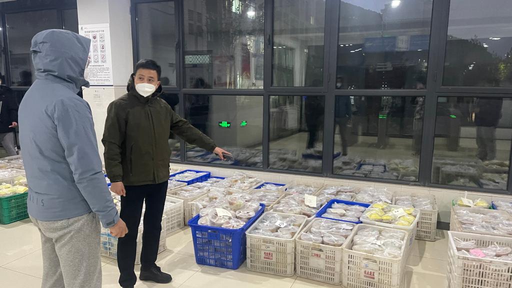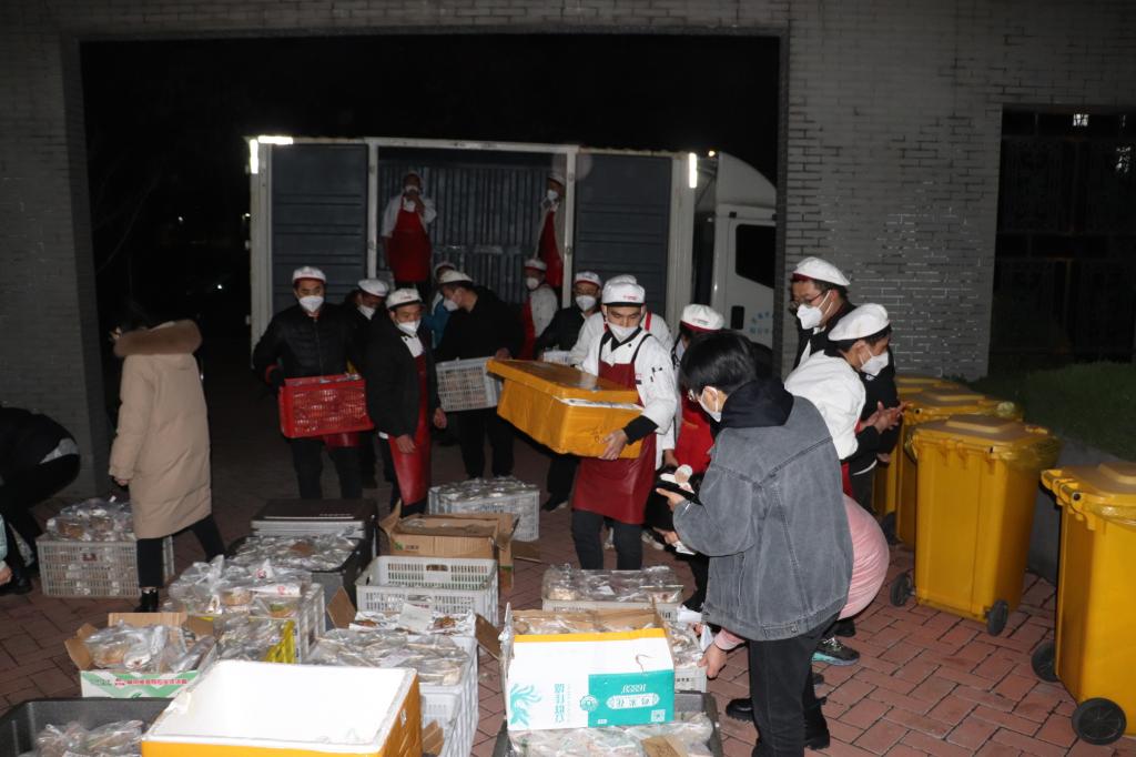在接到送餐任务后,我院积极响应,辅导员进行组织安排。老师们提前在宿舍楼下就位,准备接餐工作。其中,张辉和张志斌分别在九号楼和四号楼处负责男、女生分餐工作,与楼层长做好对接。接下来,楼层长有序通知舍长到宿舍楼下领取,最终舍长将饭菜分发到每位同学手中,确保每位同学都能及时吃到健康可口的饭菜。一份份饭菜传递手中,使同学们深刻感受到“隔离不隔情,暖人更暖心”的深刻含义。