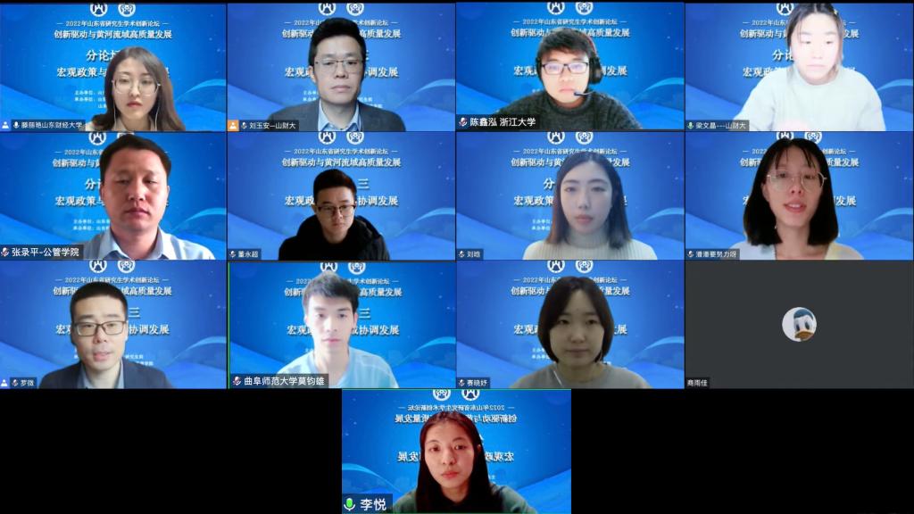 山东省研究生学术创新论坛是山东省研究生科研创新实践项目的组成部分之一。该项目面向服务国家和我省重大战略和经济社会发展需求,通过搭建研究生学习、交流、竞技平台,引导研究生培养单位深化人才培养模式改革,推动研究生教育优势资源共享,拓宽研究生学术视野,不断增强研究生使命感、责任感,切实提高研究生科研创新和实践创新能力,全面提升高层次人才培养质量。本次论坛的举办对实现公共管理、理论经济学、应用经济学、工商管理、法学等学科与国家黄河流域高质量发展战略更好地对接发挥将积极作用。