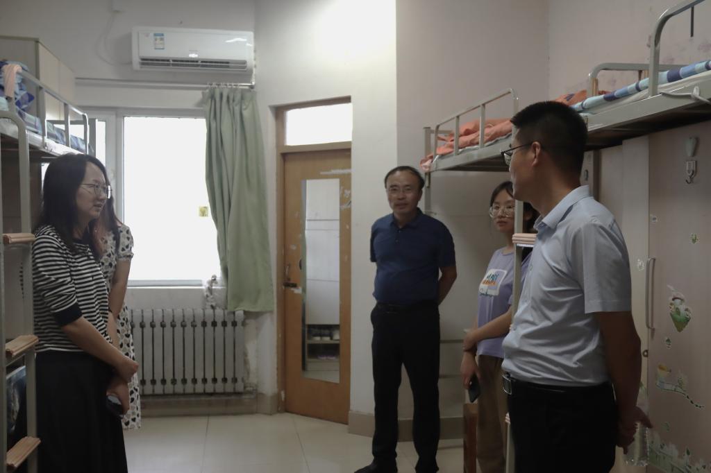 (通讯员 张心仪 摄影 田怡帆)为了解新生入学情况,帮助新生尽快适应大学生活,9月7日,学院党委书记张建,党委副书记许薇,副院长罗微和2023级辅导员张志斌来到新生宿舍,与大一新生亲切交谈。