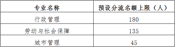 注:行政管理专业拟设置拔尖人才创新实验班1个,计划名额45人(名额包含在该专业预设分流名额上限内)。