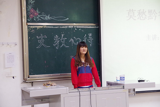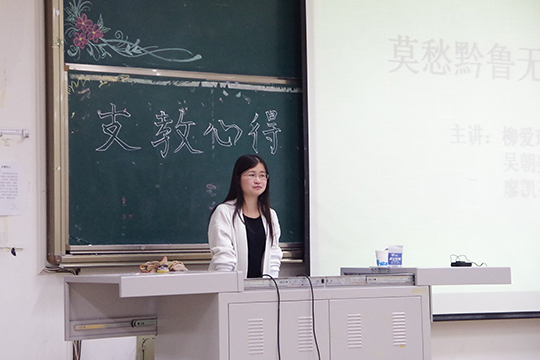 我院学子参加暑期支教活动 发布时间:2014-10-21 00:00 浏览 次 龙思任、柳爱玲、吴朝美、廖凯芬四位同学是我院行政管理和公共事业管理专业的学生,他们利用暑假期间来到贵州省黔东南苗族侗族自治州黎平县尚重镇尚重小学,参加了由我院黄河源协会开展的为期一个月的义务支教活动。此次支教活动全校共有20名同学参与。 10月14日晚6:30,在明水4201,柳爱玲、吴朝美、廖凯芬邀请作为嘉宾,通过ppt、视频等和14级学子们分享自己的支教经历和感悟,讲述了参加志愿支教活动的酸甜苦辣历程,鼓励更多的大学生热心公益,献身公益,积极地加入志愿者团队。