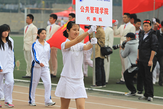 上午8时许,运动会正式开始。国旗方阵,校徽、花束、仪仗队方阵,裁判员方阵、各院和各部门方阵依次步入会场。我院代表队方阵高举蓝白相间的院旗,队形整齐,步伐矫健。“驰骋赛场,斗志昂扬,公管骄子,笑傲群芳”的口号彰显出我院选手们必胜的信念。在随后的比赛项目中,我院健儿在女子100米、400米、三级跳以及男子400米等项目中取得了不俗的战绩,教职工也在多个项目中取得佳绩,为我院争得了荣誉。同时,啦啦操队员用活力四射的表演赢得了在场观众的阵阵喝彩。