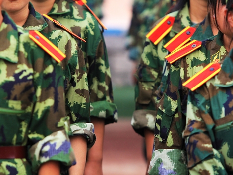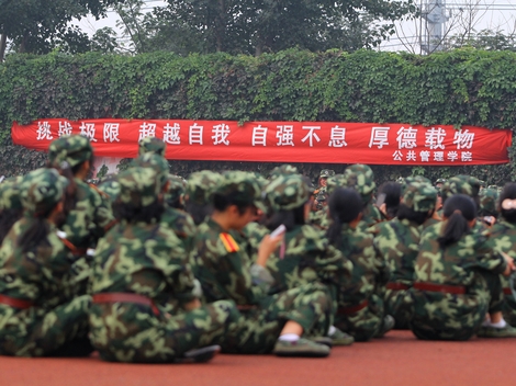 汗水都浸透了军训服 但大家依然坚持训练
