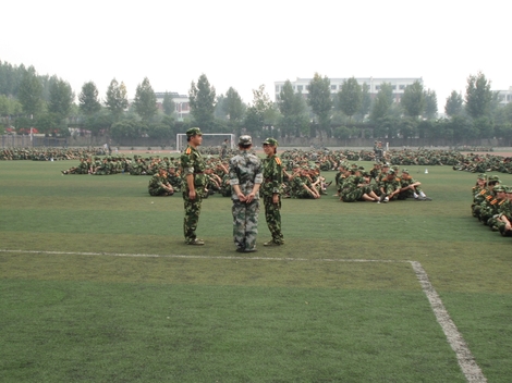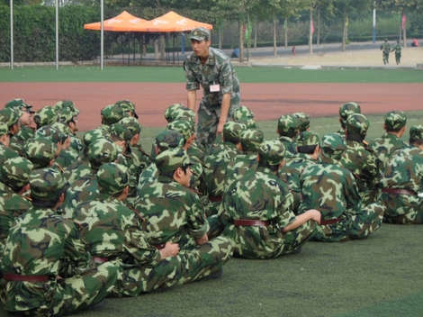 新生们和教官开心的聊天