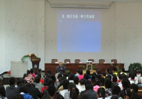 组织此次讲座的目的是为了帮助新同学们认识到:上大学,该沿着怎样的方向锻炼自己怎样的能力?该怎样锻炼自己的能力等。就这两个方面的内容,李教授通过他自己生活中的亲身经历形象地说明了方向不明确、能力缺失所带来的危害。在解答应该怎样锻炼自己的能力时,通过他所教授的成功同学的事例深刻说明能力的锻炼需要的是恒心和毅力。讲座中,李教授从“现代社会需要的人才特征”、“从本科毕业就业去向分析”、“职业生涯规划与职业锚问卷调查的应用”以及“职场规则与忠告”等几个方面进行了阐述,对同学们提出:大学毕业时,你能准备好“个人理财、有效沟通、社会交往、有效推销及时间管理”的目标要求。