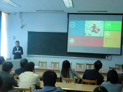 学院牟芳华副院长全面总结了2012年暑期教学与社会实践工作开展情况,周炎副书记宣读表彰通报,在2012暑期教学与社会实践中,学院共评选出一等奖一名、二等奖两名、三等奖三名、优胜奖三名。会议对受到表彰的团队颁发了获奖证书。随后,一等奖获奖团队指导教师付冷冷、副队长王玮分别作为教师代表和学生代表发言。付老师在发言中总结了团队实践经验,并与大家分享团队实践心得。王玮同学在会上展示了团队调研成果,回味了团队的实践历程。