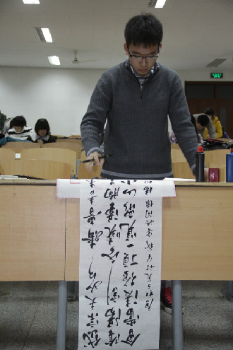 第四届“翰墨杯”校园书画大赛在明水3101、3102举行。全校共有近百名同学到场参加比赛。