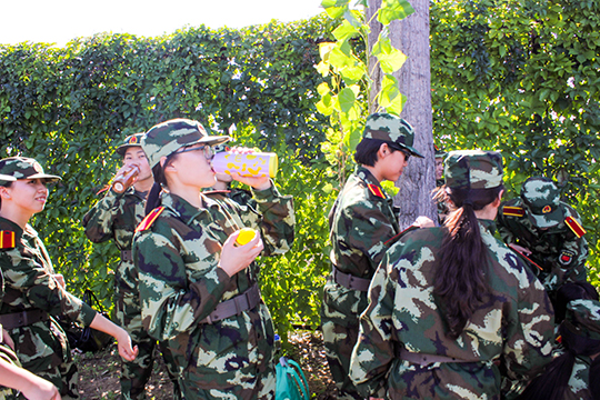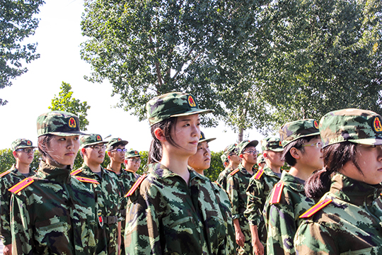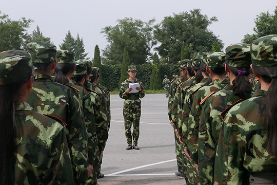 6:00起床,6:30开始了每天的晨练 ,7:30吃早餐,8:30分后接着是一切听从指挥的集体训练时间,用同学的话来说就是“无时无刻都在集合”——立正稍息、站军姿、左右转、齐步走、正步走……不论是突来的雨滴,还是持久的日晒,同学们都坚持在训练场上,站成了一排排小白杨。下午2:30后,又是比上午更辛苦的训练,当然还有大家最期待的放松时间,“团结就是力量,团结就是力量,这力量是天,这力量是钢。”蓝天下响起了军歌嘹亮。为了圆满的完成本次军训任务,同学们还要在晚上进行夜训,在明水的操场上,同学们一遍一遍的踢着正步走过主席台,一直到晚上九点,甚至九点半。面对着每天这样高强度的训练,很多同学在训练中身体不适甚至晕倒,但他们仍然凭借着顽强的意志坚持下来,继续参加接下来的训练。