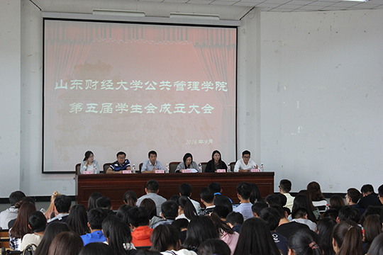 2016年9月29日,我院第五届学生会成立大会在明水校区顺利召开。学院党委副书记周炎,学工办主任、团委书记王恩娟,辅导员李广华、王超老师出席了会议。我院第四届学生会主席团成员、第五届学生会成员、申请加入第五届学生会的全体新生参加了本次会议。会议由李广华老师主持。