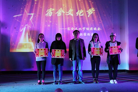 晚会由审艺堂带来的街舞作为开场,劲歌热舞赢得了观众热烈的掌声。本次宿舍文化节共有10个宿舍在之前的比赛中脱颖而出,成为今天舞台上的发光者。晚会期间同学们用PPT展示了各自的宿舍文化及生活日常,并为观众们表演了别出心裁的舞蹈、小品、歌伴舞等节目。晚会中的游戏环节踩报纸和爱的抱抱,男生女生的互动充满了趣味与友爱。宿舍文化展示结束后,由我院艺术团为在场观众带来了典雅脱俗的器乐合奏表演,引人入胜。随后通过评委现场投票,评选出了获得本次宿舍文化节一等奖宿舍10#508,二等奖宿舍10#410和10#507,三等奖宿舍10#418、10#506和1#206,鼓励奖宿舍1#106、1#218、1#114和1#303,并由李广华老师为获奖宿舍颁奖。晚会最后,由我院文艺部副部长宋承远演唱的歌曲《活着》为整场晚会画上了圆满的句号。