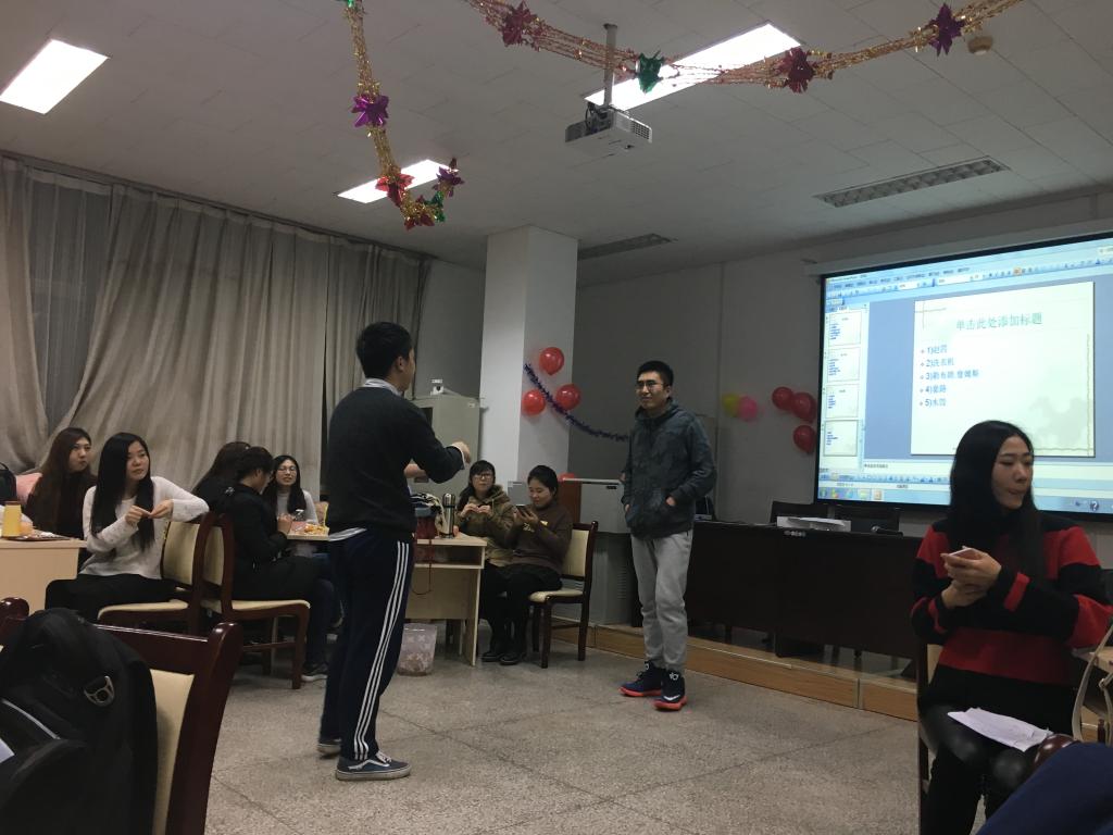 晚会还穿插着“爱的抱抱”、“抢椅子”以及“你比我猜”等别有生趣的小游戏,各种笑料不断。趣味纷纷的娱乐游戏,加强了同学们之间的互动与交流,将整个晚会推向了又一个高潮。