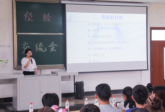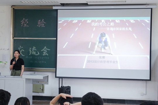 5月18日,我院学生会学习部与读书协会在明水4201教室成功举办就业经验交流会。交流会邀请了7位优秀毕业生代表分享自己的考研、考公务员、留学经验,我院2015、2016级部分学生参加了本次会议。首先,考取北京化工大学社会保障专业研究生的刘醒和考取山东大学中国哲学专业研究生的徐玲两位同学介绍了自己的考研动机、心态调整、时间规划以及考研的学习历程,将自己宝贵的考研经验分享给大家。其次,成功获得中国石化山东分公司人力资源岗offer的庞宁、考取青岛市国家税务局公务员的张璐和考取河南省公务员的李秀雅三位同学向大家介绍了自己的就业选择历程,备考经历、心态调整、学习方法、资料推荐和学习建议。最后,于雪和刘润杰两位同学为大家带来了留学申请方面的经验分享。