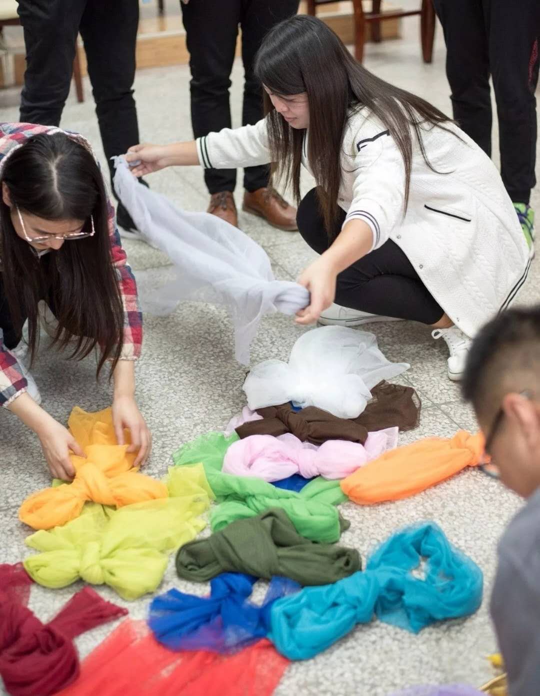 活动尾声,刘洪涛老师让大家把自己手中的彩色布料按照自己的想法去折叠,并与其他同学的布料摆放在一起,最终共同形成了属于自己团体的独特作品。在这个温馨的团体自由创意活动结束后,本次活动落下帷幕,同学们纷纷就自己在本次活动中收获的感想和大家做了分享。