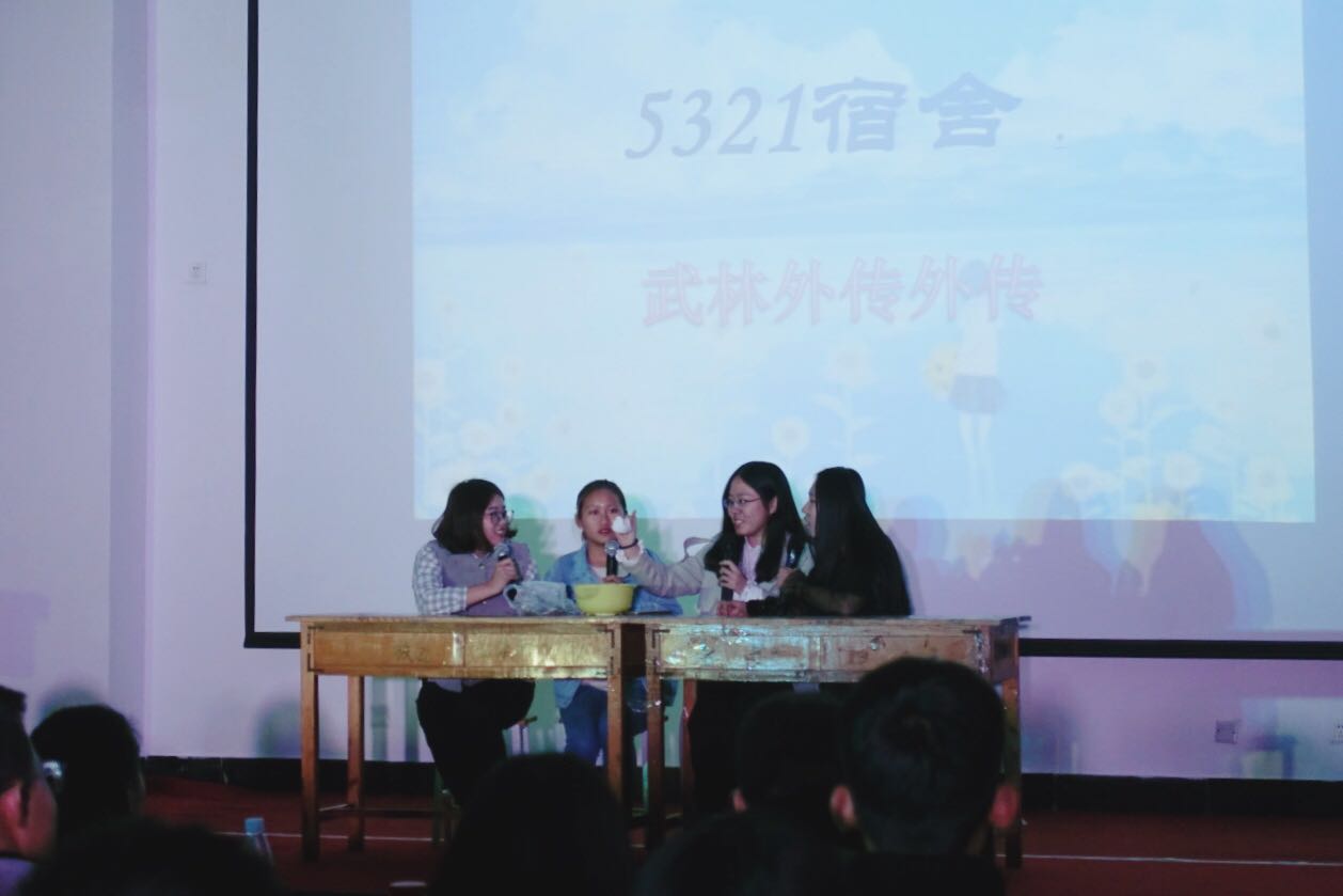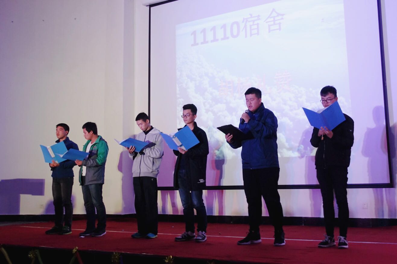 晚会在开场曲《你》中拉开序幕,动听的歌声引得全场热情高涨。经过两轮选拔,本次宿舍文化节共有八个宿舍在之前的比赛中脱颖而出。晚会期间各个宿舍的同学们各展所长,用PPT或视频展示自己宿舍有趣的生活细节,并为观众们表演了主题新颖的舞蹈、小品、诗朗诵、歌曲串烧、情景剧等节目,令人目不暇接。晚会中设有游戏环节“你划我猜”和“猜歌名”,同学们积极地参与其中,气氛轻松活跃。通过评委现场投票以及后台紧张的票数统计,评选出了一等奖宿舍11#118,二等奖宿舍5#409和5#308,三等奖宿舍5#321和5#405,由王龙老师以及我院学生会主席团成员刘瑞、郭云同学为获奖宿舍颁奖。晚会在文艺部副部长陈祥皓演唱的歌曲《房间》中圆满落幕。