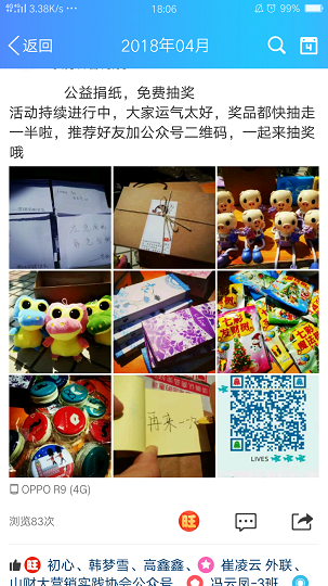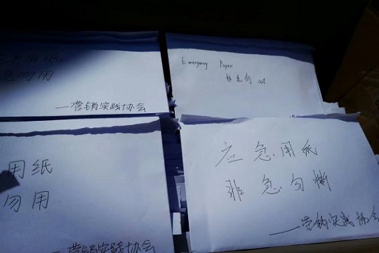 活动举办期间,协会进行了积极的线上和线下宣传。线上方面,在QQ空间、朋友圈等进行了宣传活动,借助网络的力量扩大了活动的影响力。线下,在两餐之间举办免费抽奖活动吸引大众,并向同学们介绍活动内容,达到了进一步加强宣传力度的目的。在宣传工作落实后,营销实践协会派出社团成员到各个宿舍楼开展收集应急用纸的工作。最后,将收集到的应急用纸分别包装好,放到合适的位置供大家使用。