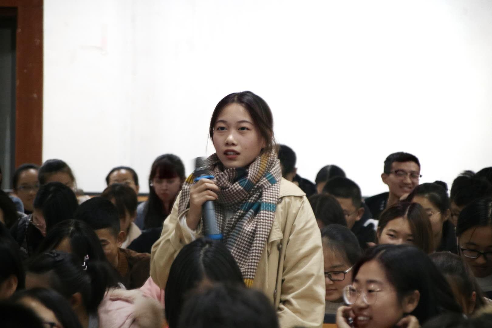 讲座从提问环节开始,冯志艳老师分别提问了大一、大二学生:想象的大学生活是什么样的,与实际生活有没有落差?同学们踊跃参与互动,纷纷表达自己的想法,场面十分热烈。冯老师针对同学们的回答分别进行分析之后表示,真实的大学生活与想象总有落差,大学生活,既要风花雪月,又要砥砺前行。