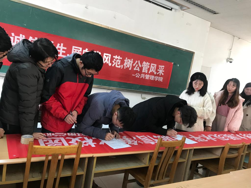 (通讯员 韩步彤 孙文静 摄影 李昭娜 孙文静)12月24日,我院召开“做诚信学生 树公管风采”诚信教育主题活动,活动分别在燕山校区和明水校区举办,学院辅导员担任主持,全体同学参加了活动。