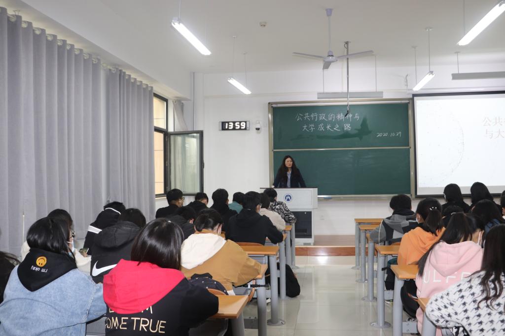 (通讯员 韩术 马丽 张晓晴 张茜 摄影 陈慧敏)10月29日下午两点,“公共管理大讲堂走进圣井系列讲座”第一讲在圣井校区8210教室成功举办,本次讲座主题为“公共行政的精神与大学成长之路”,主讲人是我院行政管理专业的付冷冷老师,我院2020级学生到场聆听。