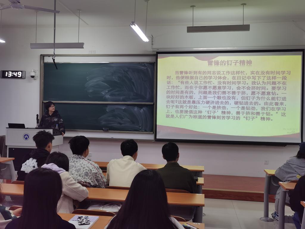 在本次主题团日活动中,我院借助“三会两制一课”,组织开展了“寻找身边的雷锋”、“弘扬雷锋精神”大讲堂等系列活动,通过组织同学们观看相关视频资料、朗诵雷锋日记、开展学习雷锋讨论会等方式,让同学们深入学习了雷锋精神,加深了同学们对雷锋精神的感悟和体会。参加了团日活动后,同学们不仅积极主动地分享了自己的学习感悟,还表明了要弘扬雷锋精神,传递青春能量的决心。同学们说,雷锋精神是永恒的,我们要把雷锋精神继续传承,用自己的行动把雷锋精神落到实处。